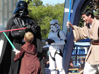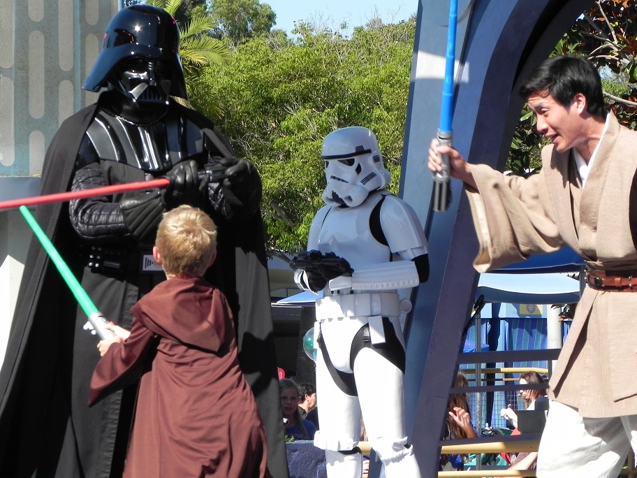 It was also our first time on the new Star Tours. We love Star Wars so for us it was fantastic. It’s in 3D, which I don’t usually like, but it’s very well done here, and there are 54 variations so the two times we went we had different beginning, middle, and endings. Just watching the boys laugh and hoot and holler made it that much more exciting. If that wasn’t enough, their dreams came true when they were pulled out of the crowd to do the Jedi Training Academy. Even my younger, shyer son battled Darth Vader and both boys were awesome.