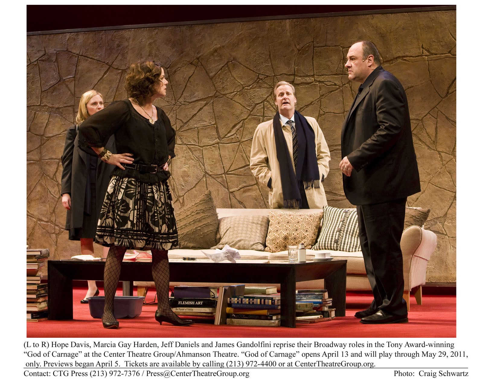 It stars Marcia Gay Harden, Hope Davis, Jeff Daniels, and James Gandolfini. It’s the story of two couples that get together to talk about an incident involving their children. It devolves into a battle about marriage, parenthood, and morality. I really love all of these actors and they were extraordinary.