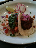 To do our very small part for Homeboy, friends and I had lunch at Homegirl Cafe. The Boyle Heights business is self-sustaining and run by former gang members. The food is fantastic. We shared roasted corn dish that was excellent and I had cochinita, spicy barbecued pork, and salmon tacos.