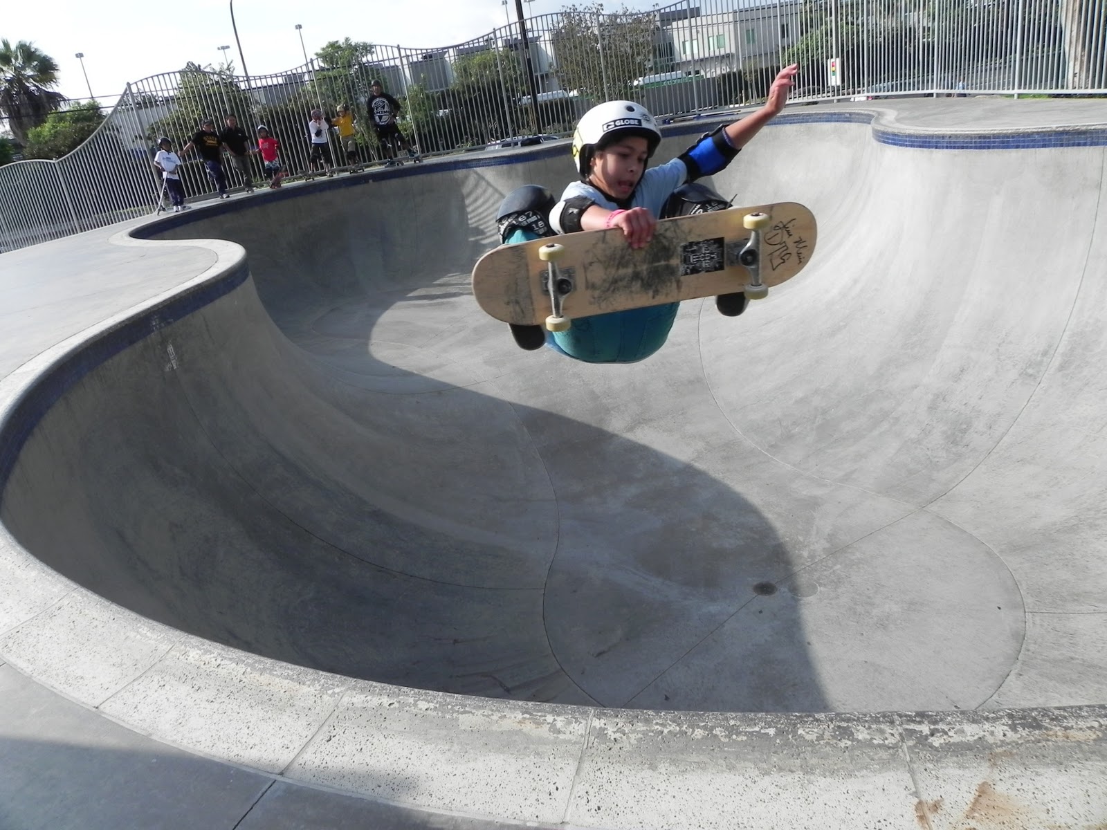 That’s why I was a little worried about the Razor Playdate picnic a couple of Saturdays ago at the skate park in Culver City. Kids were supposed to bring knee and wrist guards and helmets. They would ride scooters, skate boards, 3 wheeled bikes that can spin in a circle, and a motorized tiny car.